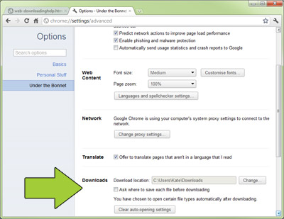 Next choose Under The Bonnet (or under the Hood if you've got the US version!). Towards the bottom of the page you'll see this: